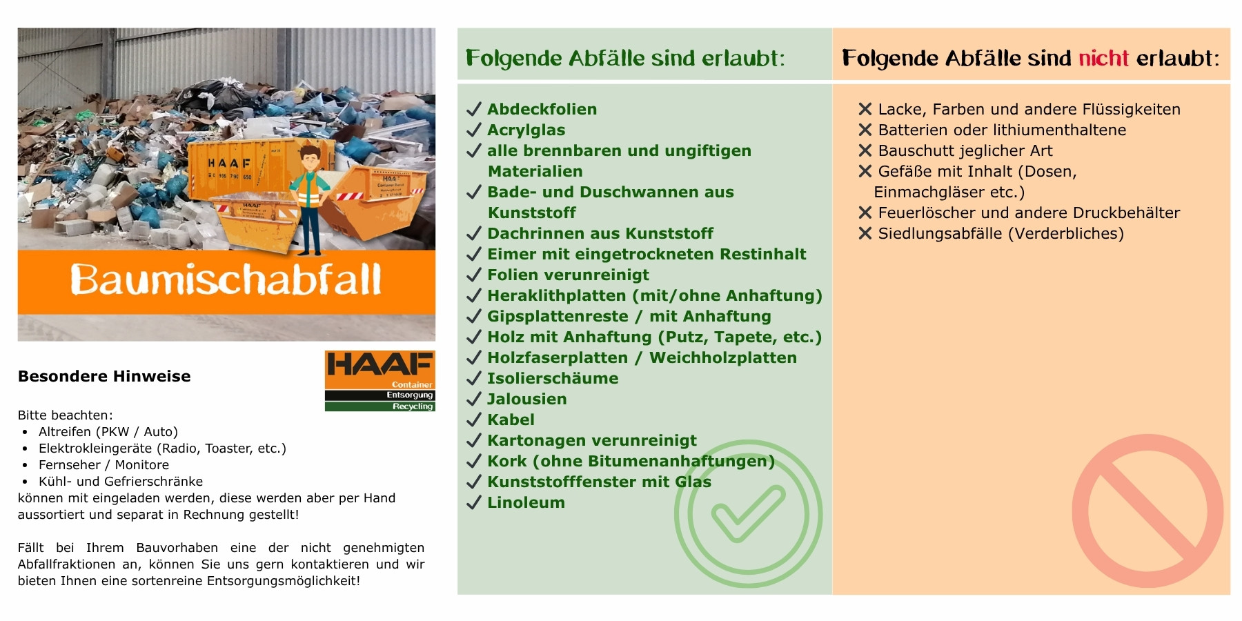 Wenn Sie unsicher sind, welche Materialien bei Ihrem Projekt anfallen oder wie Sie diese richtig entsorgen, empfiehlt sich eine frühzeitige Abstimmung.
