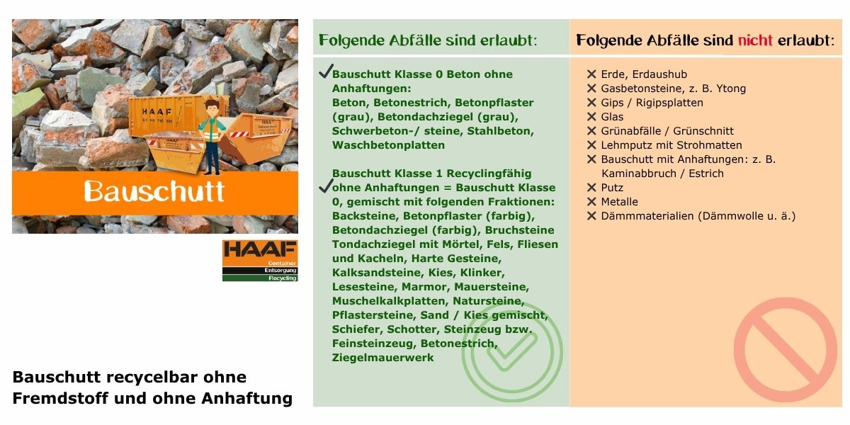 Solcher Bauschutt kann optimal recycelt werden und verursacht die geringsten Entsorgungskosten.